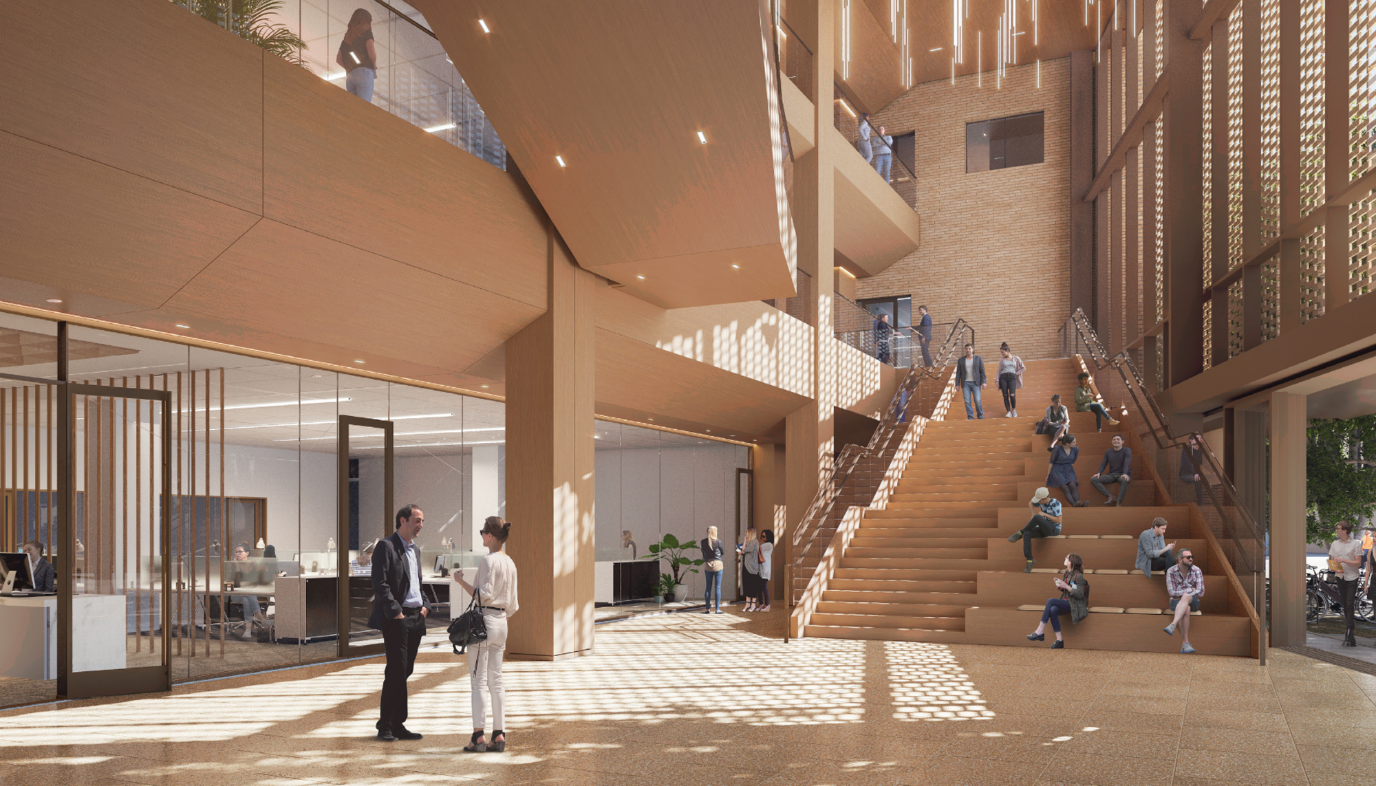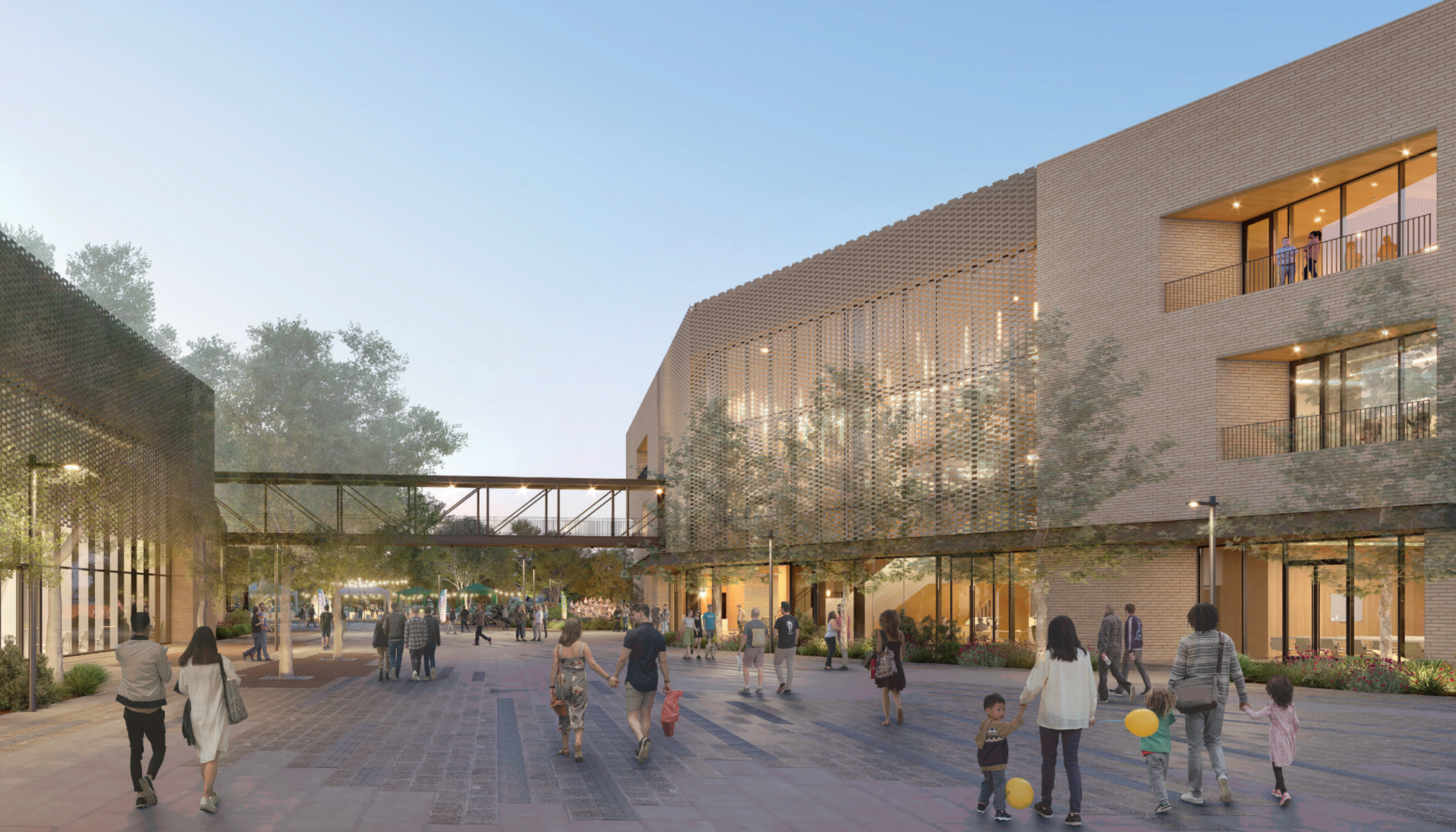 All three buildings feature brick facades and use steel moment frames with Sideplate connections in one direction, BRBF in the other direction, and conventional spread footing foundations. There will be a 90 ft. pedestrian bridge connecting the City Hall and the Library. Phase 1 is expected to be completed by early 2028.